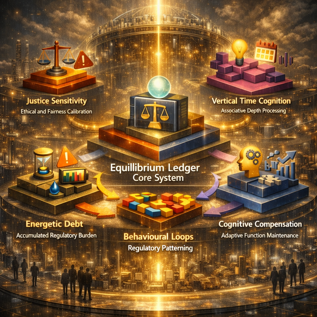 The Equilibrium Ledger runs on two axes, a procedural axis charting governmental velocity and automation, and a temporal axis registering the accrued depth of knowledge, care, and lived experience. Each ledger entry captures metadata about governance, epistemic accessibility, and the synthetic systems it monitors.