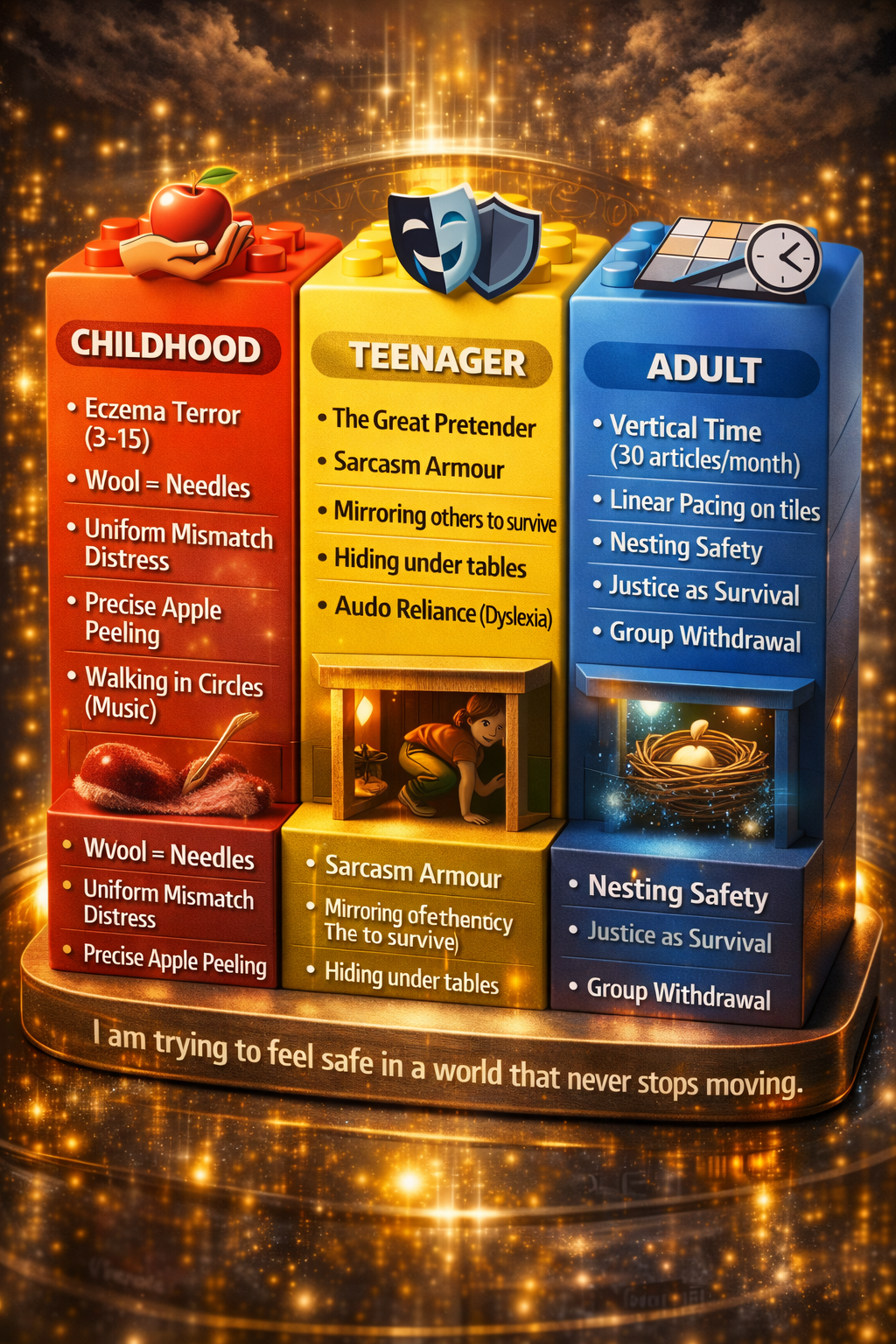 This is a personal yet structurally analytical memoir exploring life lived through undiagnosed neurodivergence. It follows masking, misinterpretation, overperformance, burnout, and eventual clarity. Diagnosis becomes not an endpoint, but a language through which decades of experience finally acquire coherence.